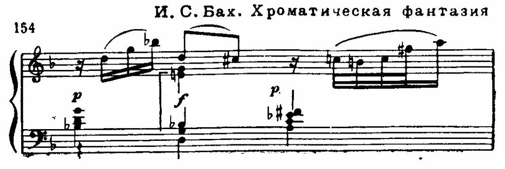 Наиболее полно и ярко дерзновенность баховских экспериментов проявилась в «Хроматической фантазии и фуге». В сочинении для клавесина, инструмента достаточно ограниченного в своих образных и выразительных возможностях, Бах собрал и переплавил в новом единстве достижения органной, вокально-инструментальной, скрипичной музыки и на основе этого сплава создал произведение, которое по замыслу, средствам воплощения явилось гениальным предвидением будущего зрелого фортепианного стиля.