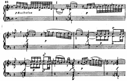 Длительная фермата подчеркивает напряженность ожидания, усугубляя впечатление трагического возгласа. Не дает устойчивого завершения и вторичное проведение начальной фразы.