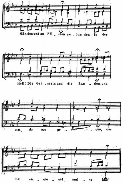 Арии-элегии «О разум мой!» (fis-moll), «Совершилось!» (h-moll), ариозо «Внемли, душа моя!» (Es-dur) принадлежат к самым вдохновенным страницам баховской лирики.
