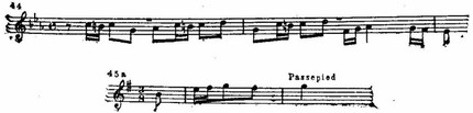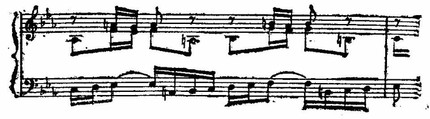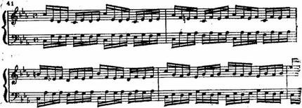 Первый раздел значительно обширнее второго, зато в последнем развитие интенсивней, стремительнее. В первом разделе процесс тематического развертывания сопряжен с происходящим постепенно накоплением гармонической неустойчивости. Введение органного пункта (такт 21) и диссонантные сочетания, образующиеся в результате гармонических наложений, резко повышают степень напряженности, которая особенно усиливается к концу построения. Здесь можно было бы ожидать быстрого разрешения неустойчивости, однако внезапный поворот отодвигает устойчивое завершение, больше того, он приводит к новому нарастанию.