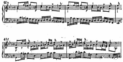 Отмечая значительность момента, Бах, единственный раз в этой прелюдии, вводит полифонический прием — канон, содействующий особой концентрации движения.