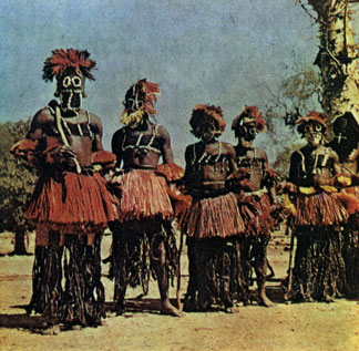 Большая часть африканских танц. представлений длилась неск. часов (от захода солнца и до утра). У народов тропич. Африки танец был связан прежде всего с охотой и земледелием. Человек использовал язык танца, надеясь повлиять на растения, животных и природу, расположить их к себе. Охотники подражали повадкам и крикам животных и птиц; одетые в шкуры животных исполнители тотемич. пляски обещали удачу в охоте. Перед охотой на крупных зверей африканцы устраивали большие танц. представления. В костюмах из шкур леопарда, обезьяны, антилопы или оленя, с украшениями из страусовых перьев на голове, танцоры изображали животных, преследуемых охотниками. Эти пляски отличались исключит, богатством, разнообразием и остротой ритмич. рисунка, напр. дошедший до наших дней танец ндламу народов банту (ЮАР), исполняемый участниками (до 300 чел.) в костюмах из звериных шкур, меховых браслетах и головных уборах из перьев птиц. Композиция танца строится линейно, точность ансамбля и строгость дисциплины указывают на связь с тренировкой охотников. Палочки, украшенные белым мехом обезьян, заменяют копья. Обязательно участие солиста, запевающего песню и задающего ритм танцу, постепенно ускоряющемуся и всё более усложняющемуся. Следы старой охотничьей пляски носит танец мучонголо племён педи (сев. басуто), один из немногих, сохранившихся в тропич. Африке танцев со щитами. Высокое мастерство работы мускулов торса демонстрируют танцы хауса, объединённые под названием утейро (Сев. Судан). Интересен зулусский танец охоты на оленя (Юж. Африка).
