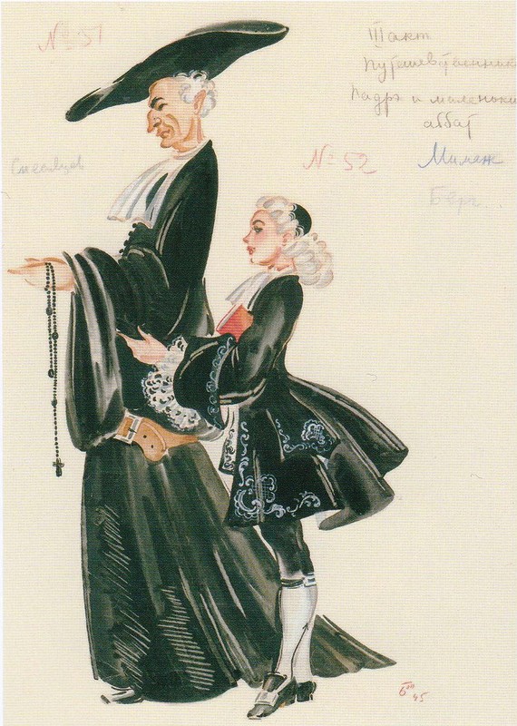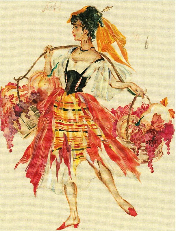 Иллюстрации: эскизы Татьяны Бруни к балету «Мнимый жених», 1946