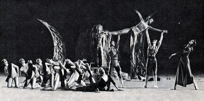С постановкой трагедии «Агамемнон» Эсхила в Нац. театре (осн. в 1932 Ф. Политисом) возрос интерес к произведениям античной драматургии, что явилось стимулом к дальнейшему развитию хореографич. искусства в Греции, поскольку декламация хора в древнегреч. трагедии сопровождается ритмичными движениями, танцем и пантомимой. Представления под открытым небом устраиваются и ныне в антич. театрах в Эпидавре, театре Ирода Аттика близ Акрополя, а также в других сохранившихся древних театрах. Хореография в этих пост. принадлежит балетм. Сакелариу, Ману, З. Николуди, М. Казази, Варути, Д. Цацу и М. Хорс (в 70-х гг. гл. балетм. Нац. театра).