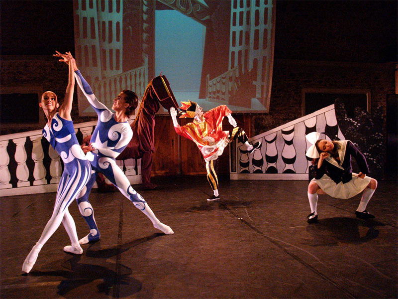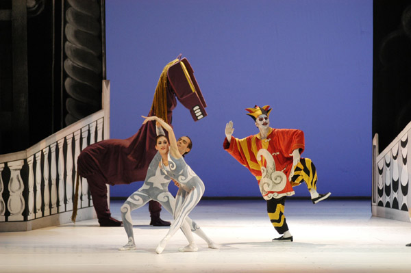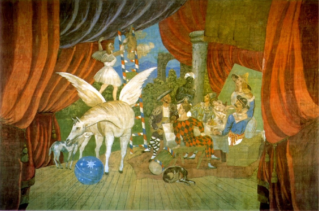 В тишине на сцену выбегает гнедой Конь с белыми пятнами, усмехающийся от уха до уха. После робких попыток развлечь зрителей, он исчезает. Занавес балагана закрывается за ним, а когда открывается, за ним два Акробата, девушка и юноша, исполняют pas de deux, имитируя трюки акробатов и канатоходцев.
