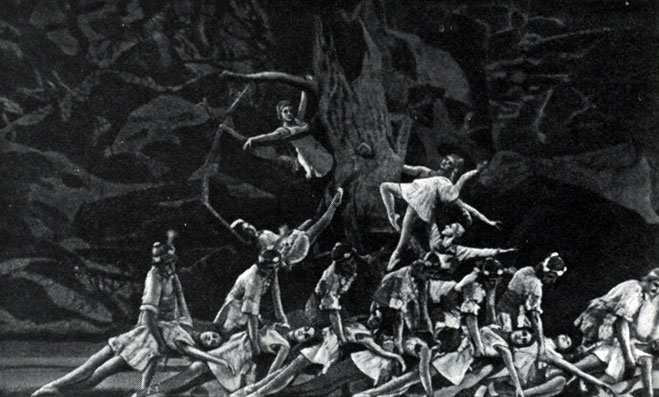 В 1930-х гг. нар. героика обогатила хореографию синтезом форм клас-сич. и национально-характерного танца, массового и сольного в балетах В. И. Вайнонена, Ермолаева, Чабукиани.