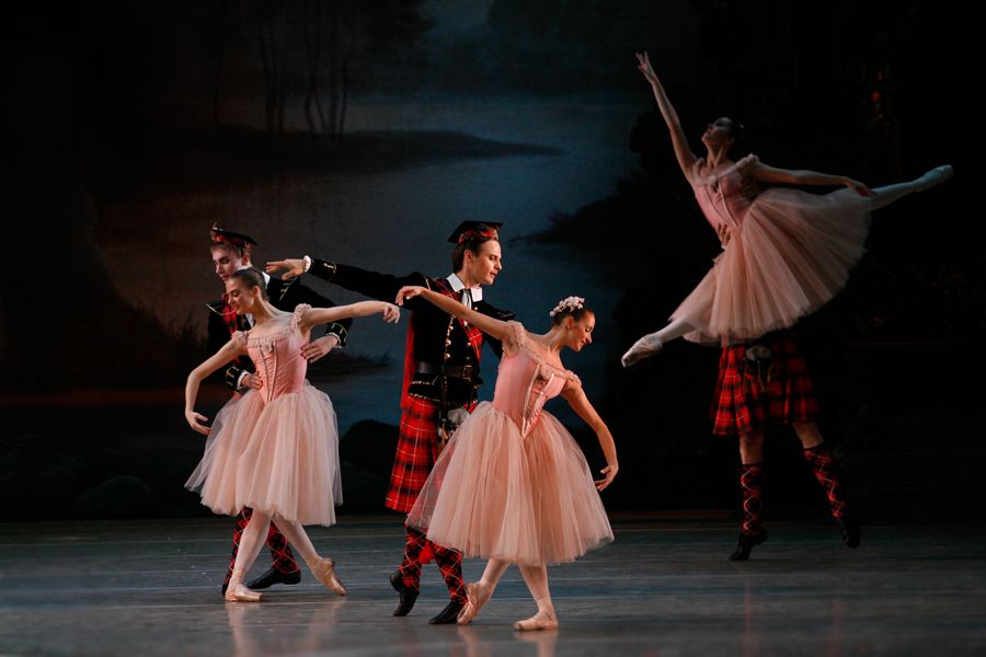 Первую часть балета открывает кордебалет, все исполнители одеты в подлинные шотландские костюмы. Далее следует па-де-труа для солистки и двух солистов и вариации солистки.