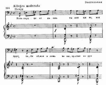 Наиболее широко раскрывается образ главного героя оперы во II акте, который начинается героической арией Банк-бана о родине. Пластичная, выразительная, ярко национально окрашенная мелодия, богатая, красочная гармония, пафос глубокого чувства скорби по разрушенному семейному очагу и страдающей отчизне, выразительно воплощенные контрасты состояний делают эту арию одним из лучших и популярнейших номеров оперы: