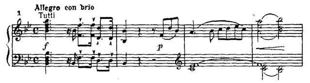 Своеобразен сплав нового со старым, индивидуального с традиционным в первой части — Allegro con brio, 4/4, B-dur.