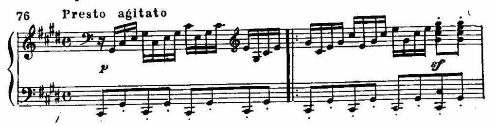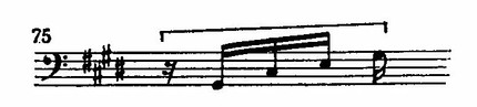 В этом мотиве, как в зародыше, содержится динамический прием, типичный для всего финала: целеустремленное движение от слабой доли к сильной, с акцентом на последнем звуке. Контраст между строгой периодичностью повторений мотива и стремительным развитием интонаций создает эффект крайней взволнованности.