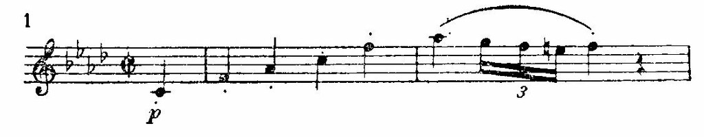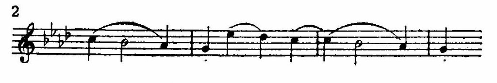 Но тем важнее почувствовать новые образные тенденции Бетховена. Легко улавливается зависимость всякого рода аккордовых тем от естественного звукоряда медных духовых инструментов. Однако, если в середине XVIII века и раньше подобные ходы по тонам аккордов чаще всего связывались с охотничьей музыкой, то в революционную эпоху Бетховена они получили иной выразительный смысл — «воинственно-призывный». Особенно существенно расширение подобных образных интонаций на область всего волевого, решительного, мужественного.
