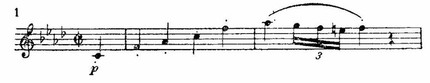 В конце экспозиции повторения начальных ударов и пауз (в до-миноре) как бы подчеркивают внутреннюю контрастность образа (порыв воли и глубина чувства), который вместе с тем монолитен бурным «вечным движением» триолей.