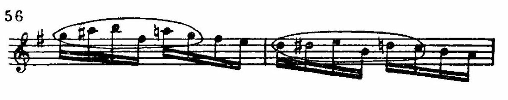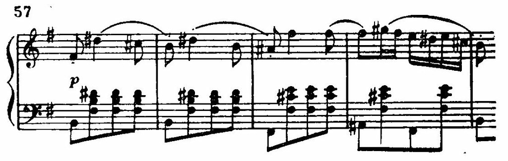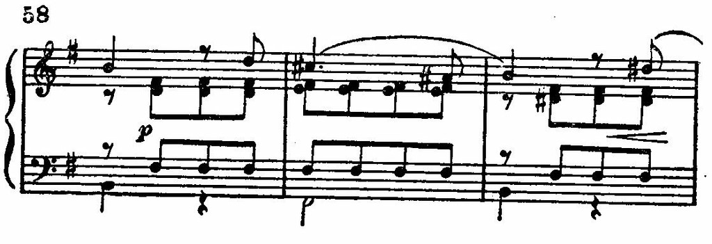 Вот, поистине, возрождение и развитие (да еще какое яркое!) борьбы «двух принципов», намеченной в сонатах ор. 14. Конечно можно, при желании, трактовать всю экспозицию как показ разных сторон одного характера. Но это было бы, пожалуй, менее естественно.