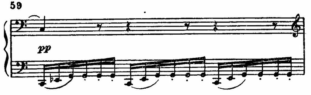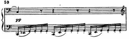 Было бы, конечно, неверным отрицать наличие в этой части поэзии бетховенских образов и, в частности, очаровательных звучаний природы. В большом периоде, начинающемся трепетом баса: