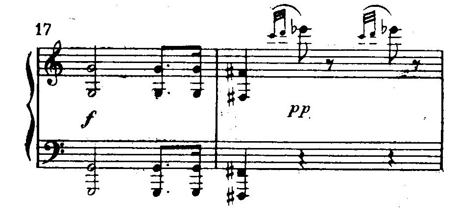 Все такие и подобные им моменты создают впечатление пространства, открытого воздуха, больших движущихся масс, несмотря на камерность фортепианных средств выражения. Именно, в плане насыщенной, массивной трактовки фортепиано Бетховен выступает здесь как новатор.