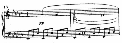 Что касается конца трио, то свойственные ему тоскливые интонации, плагальные обороты, терции и квинты аккордов, выделяющиеся в мелодии, звучат уже вовсе романтично: