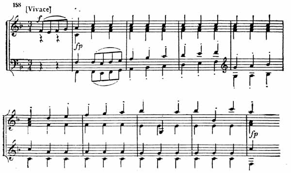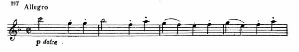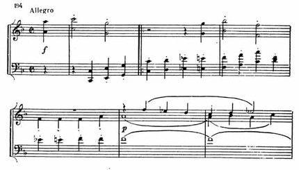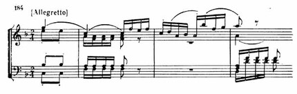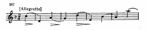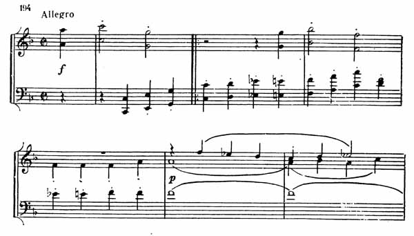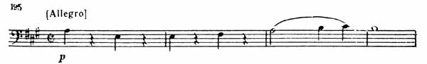 Первая тема (пример 193) составляет основу двенадцатитактной интродукции, в дальнейшем возвращающейся, вторая является главной темой Allegro.