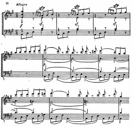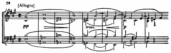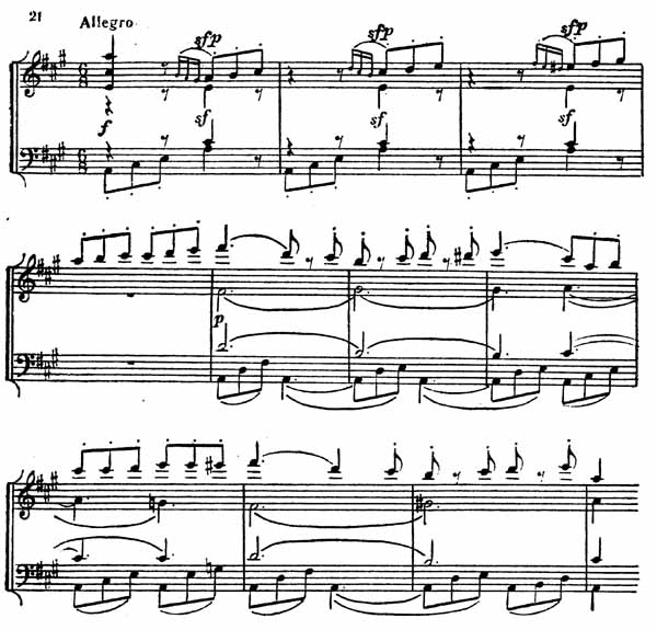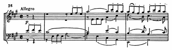Начавшись в тональности минорной доминанты, она далее переходит в искрящийся E-dur.