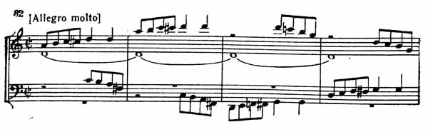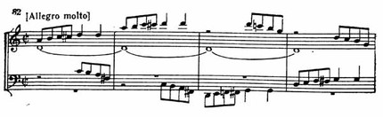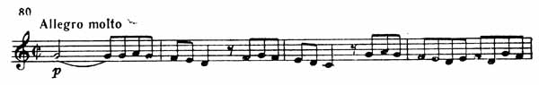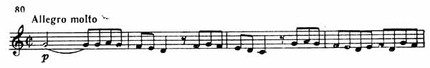 Главная партия Allegro изложена в виде фугато. Тема появляется у альта (пример 80).