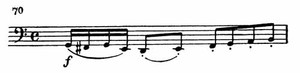 Заключительная партия начинается мотивом, напоминающим первую часть Четвертой симфонии (пример 70).