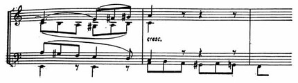 Вслед за этим смелым движением происходит модуляция из cis-moll в d-moll; она является началом разработки. Такого неумолимого подъема нельзя встретить во всей квартетной литературе до Бетховена.