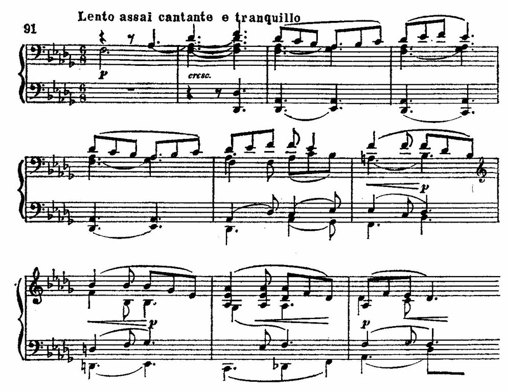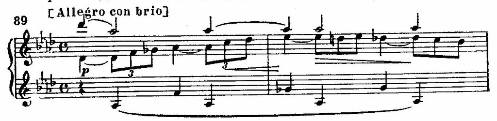 Лишь на один миг мелькает гармоничная вторая тема, выражающая образ недосягаемой мечты:
