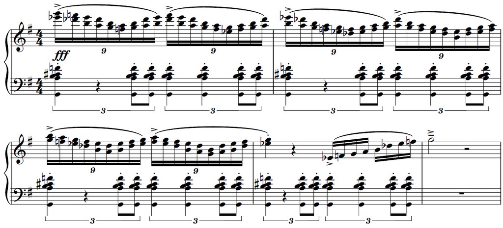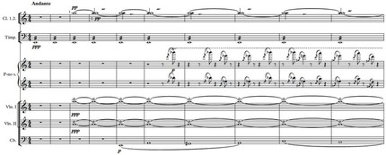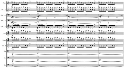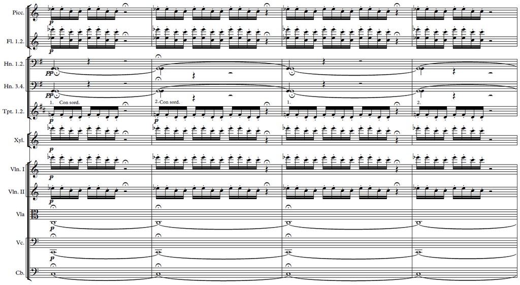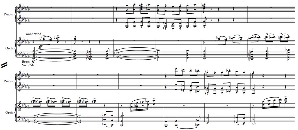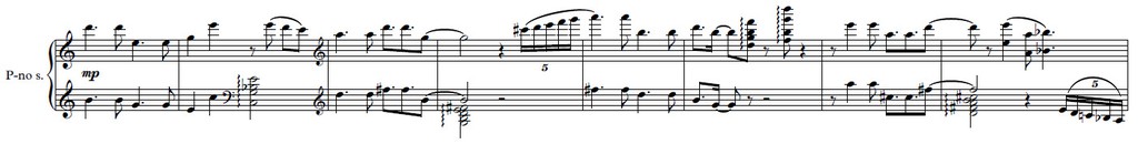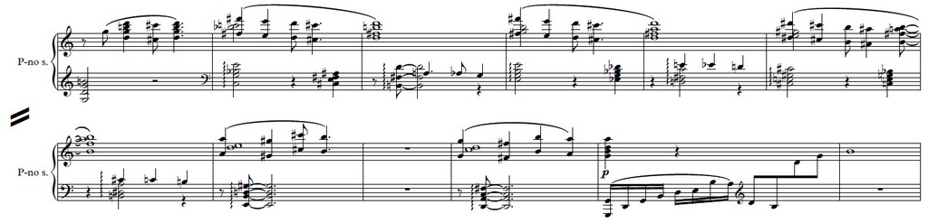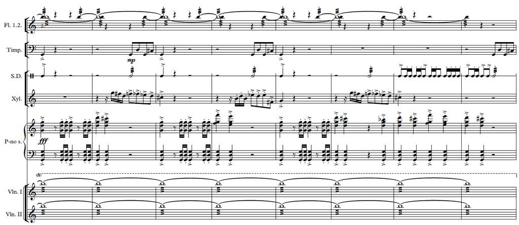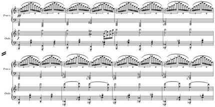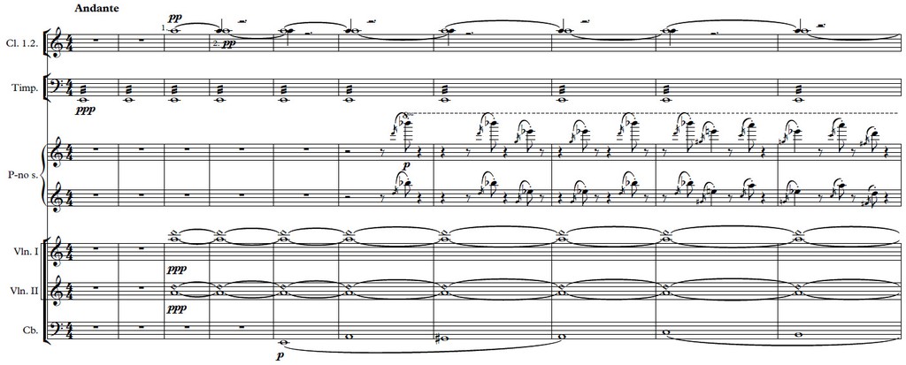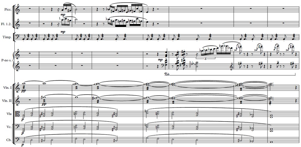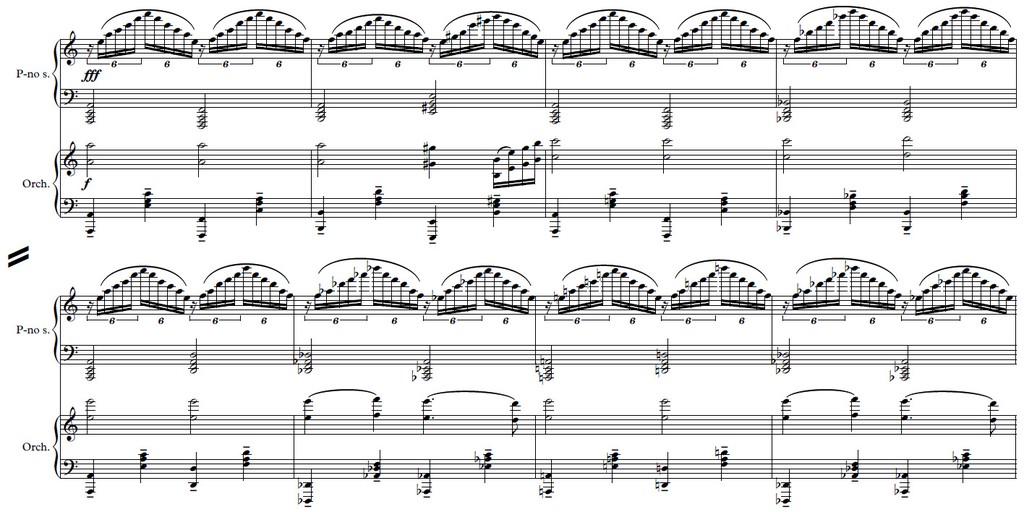 9) В оригинале этот «хрустальный звон» создавали ксилофон, арфа и флейта вместе с пикколо. В партитуре Fantasie Concertante значительная часть партии ксилофона передана солирующему фортепиано.