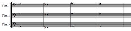 Три контрастных мотива – три варианта лейтмотива разрушения - составляют восьмитактную тему трехголосной фуги (4+2+2 такта):