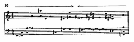 Прелюдия (фактически — токката!) с ее наступательным движением шестнадцатых, пульсацией ostinato, сменой ритмов (5/16 и 7/16 ) сразу выбивает из привычных стереотипов начала реквиемов — траурного песнопения. В ней слышится активный протест против смерти, она передает скорее тревоги бытия. Прелюдия содержит основную музыкальную идею всего сочинения — двенадцатизвучную серию (пример 10), которая затем и функционирует как целое, и расчленяется: из нее выделяются отдельные тематические секции. Стравинский подчеркивает в ней интервалы квинты, кварты, терции. В дальнейшем изложении Прелюдии он применяет ракоходное движение, как бы с самого начала формулируя принцип концентрического построения, который станет основополагающим для всего сочинения.