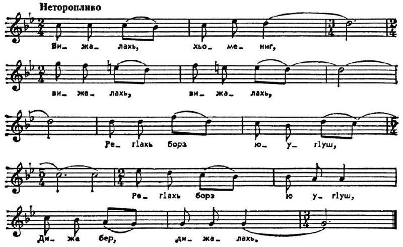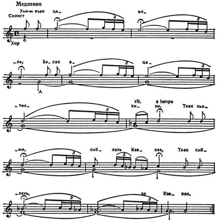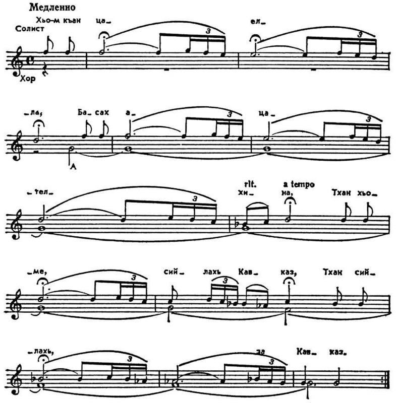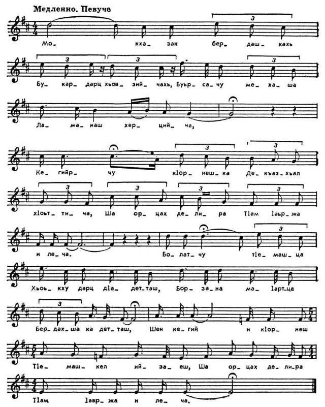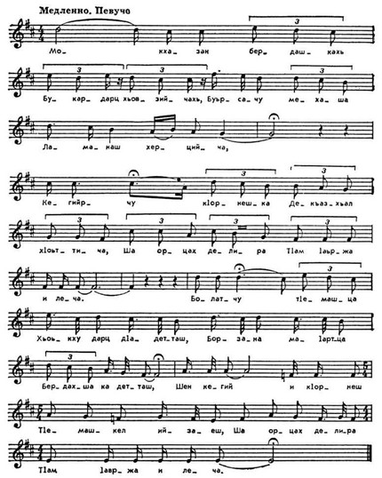 Народная песня «Голос матери». Нотация А. М. Шахбулатова.