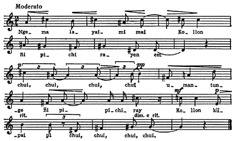 Значительна роль арауканской музыки в общей культуре страны (хотя она и не обнаруживает тенденций к взаимодействию с креольской, существуя параллельно и независимо от неё). Она служит источником проф. творчества чилийских композиторов, обращающихся к арауканскому фольклору и музыке (К. Лавин, К. Исамитт Аларкон и др.).