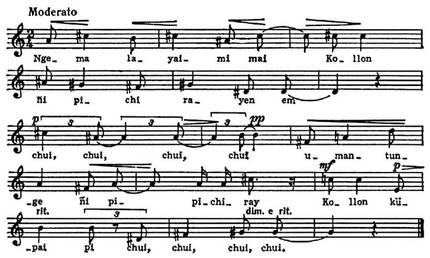 Из некогда многочисленных индейских племён, населявших территорию Чили до прихода испанцев (30-е гг. 16 в.) и впоследствии истреблённых завоевателями либо ассимилированных пришельцами, лишь мапуче, более известные как арауканы, сохранили свой язык и свою культуру, в т. ч. музыкальную. Музыка арауканов самобытна. Широко представлены вокальные и инструментальные жанры. Имеются сольные и коллективные песни (с инстр. сопровождением и без него) — лирические, любовные, детские, колыбельные, трудовые, военные, а также песни, сопровождающие ритуальные, магические, «врачебные» церемонии и погребальные обряды. Среди танцев бытуют индивидуальные и массовые, мужские, женские, детские, смешанные, приуроченные к определённым событиям (рождение, свадьба, встреча гостя и т. п.). Танцы могут сопровождаться пением, игрой на муз. инструментах или тем и другим.