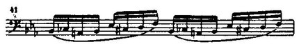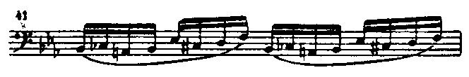 Начало piu mosso интродукции рондо ор. 16 — образец хроматических обыгрываний трезвучия (пример 41); тут же прообраз воинственных, тревожных басовых рокотов из ряда позднейших полонезов Шопена: