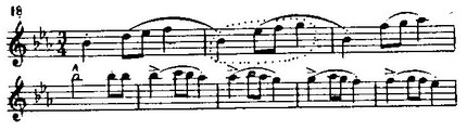 Мелодика вальса в целом также типична. Его начало представляет хороший образец обычного для Шопена мелодического образования, которое Вуйцик-Кеупрульян называет довольно вычурно „стилизованной гаммой" (stylisowana gama):