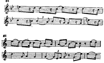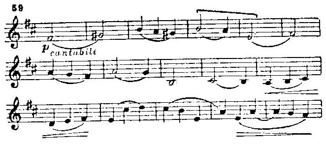 Из деталей отметим некоторые. Такты 41-42 — сравни вступление фантазии f-moll. Такт 57 и дальше (пример 60) — сравни Scena е Duetto (вторые) в первом акте „Нормы" Беллини — тема такта 210 и дальнейших: