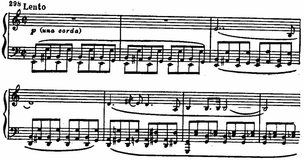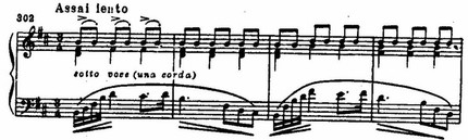 Такого рода задержания, так же как и призывные обороты, в музыке романтиков служат выражению чувства томления, лирического порыва. В различных контекстах и звуковых комбинациях ими пронизана ткань многих произведений Листа, Вагнера, Скрябина.