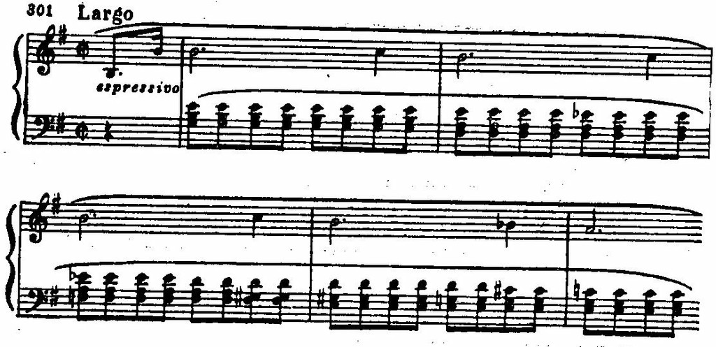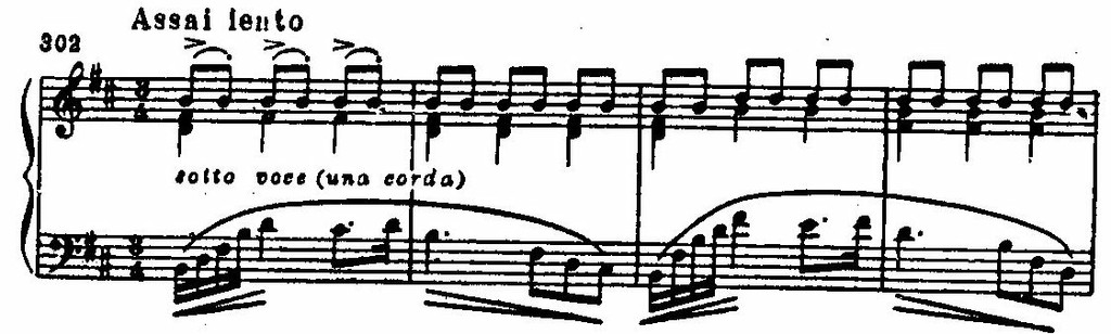 После развитых ранее доминантово-тонических соотношений тональностей прелюдия заканчивается опять-таки плагальным кадансом (альтерированная субдоминанта) с последующим поразительным по яркости эффектом гулких заключительных нот d в контроктаве.