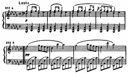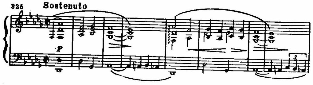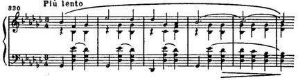 Так, ми бекар (в басу) переходит в относительно устойчивый звук f раньше, чем наступает разрешение верхнего голоса (des — с) и среднего, с его хроматическим ходом as — а — b; последний звук (b) в качестве основного тона появляется уже за гранью вступления, в главной партии: