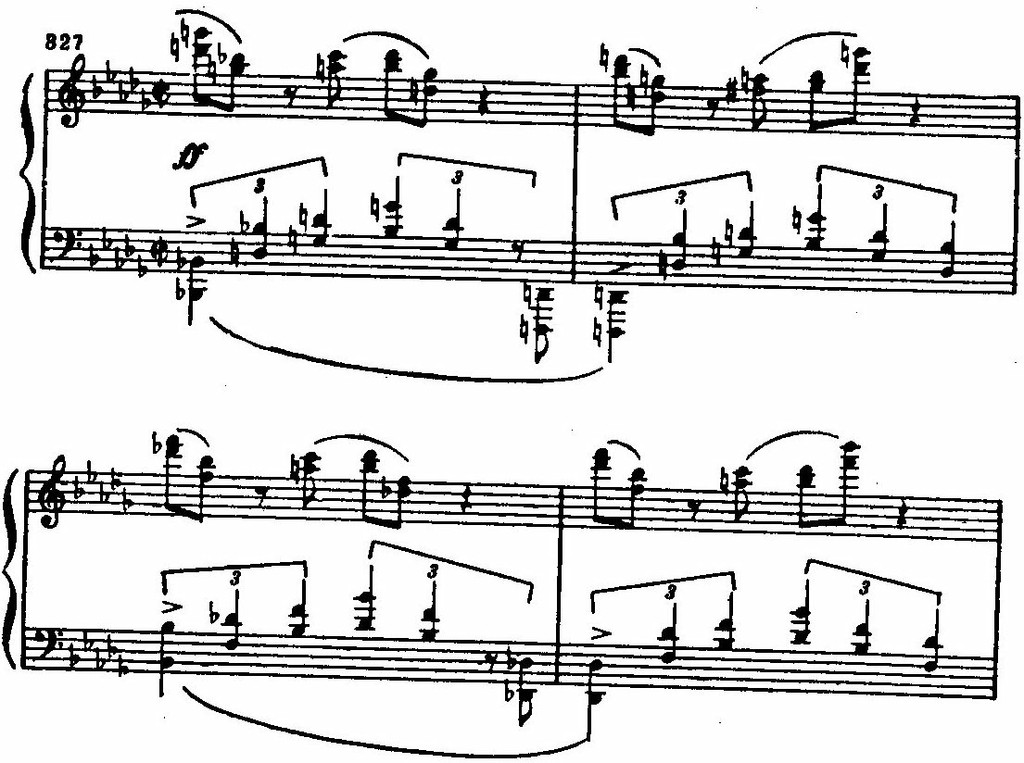 Аккорды fortissimo в заключительной фразе первой части с резкими перемещающимися акцентами, категоричность последнего каденционного оборота октавных унисонов утверждают ее «недобрую» направленность.