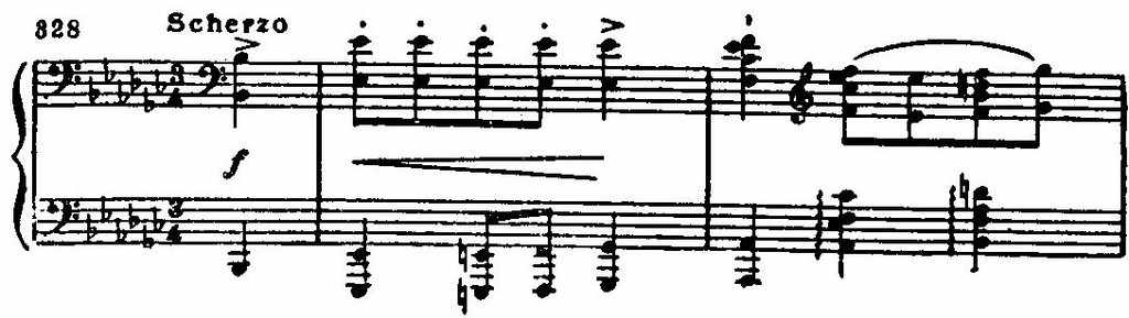 Скерцо (es-moll) — это царство злого, стучащего ритма, его мрачной энергии.