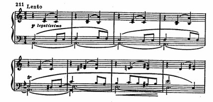 На фоне блестящей концертности большинства вальсов выделяются несколько лирических песенного склада, в частности прекрасный а-moll’ный ор. 34, № 2, с его глубоко меланхолическим настроением и типично славянским обликом: