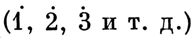 (Цифра с одной точкой справа равна половинной ноте, с двумя точками — половинной с точкой, с тремя точками — целой.)