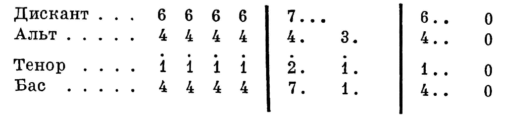 — доминантовый септаккорд с повышенной квинтой). Обозначение ступеней октавы ((до, ре (и т. д.) араб. цифрами получило нек-рое распространение в рус. школьной практике хор. пения (по цифровой системе Э. Шеве; см. Сольмизация): ступени в средней певч. октаве (1-я октава у дисканта и альта, малая — у баса и тенора) — 1, 2, 3, 4, 5, 6, 7 (пауза — 0), в более высокой октаве — с точкой сверху (