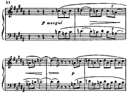 В пластических напевах гобоя, в щебечущих фразках первых скрипок покой кажется установленным (это чувство подтверждается органным пунктом тоники ля мажора). Однако уже с поворотом к фа-диез мажору появляются беспокойные интонации (повышенная четвертая ступень).