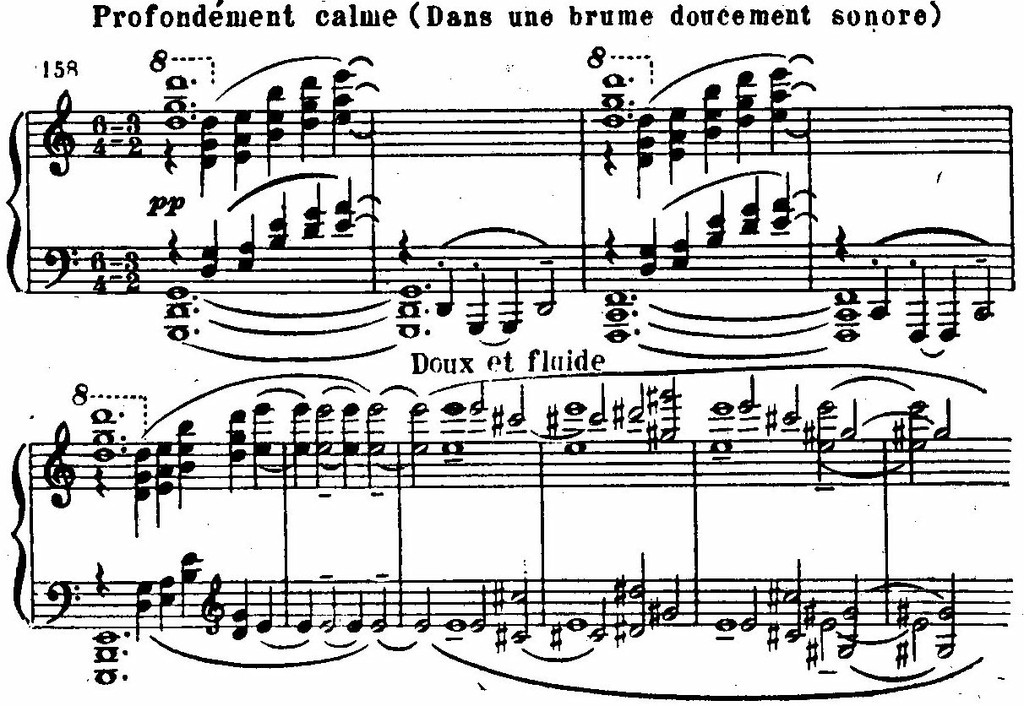 Это один из образцов развития и усложнения Дебюсси интонаций, имеющихся у его предшественников.