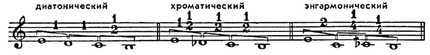 Использование хроматич. и энгармонич. родов отличает греческую музыку от позднейшей европейской. Господствующий в последней диатоннзм был y греков хотя и важнейшей, но всё же лишь одной из трёх ладо-интонац. сфер. Богатство возможностей мелодич. интонирования выражалось также в многообразных смешениях наклонений, введении интонационных «окрасок» (xpoai), не фиксировавшихся как особые наклонения.