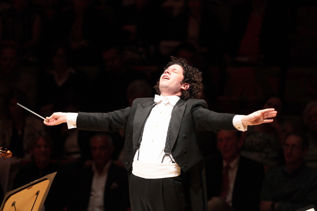 8 октября он дал свой инаугурационный гала-концерт в Walt Disney Concert Hall, продирижировав мировой премьерой произведения Дж. Адамса «City Noir» и 1-й симфонией Малера. Этот концерт транслировался в программе «Great Performances» («Выдающиеся исполнения») канала PBS по всей территории США 21 октября 2009, с последующей спутниковой трансляцией по всему миру. На лейбле Deutsche Grammophon выпущен DVD с записью этого концерта.