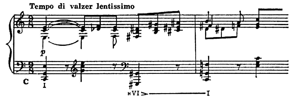 Художеств. использование Э. в европ. музыке относится к нач. 16 в. (А. Вилларт, дуэт «Quid non ebrietas»); Э. широко применялся в хроматич. мадригале 16–17 вв., особенно венецианской школы. Со времени И. С. Баха он становится важным средством внезапной модуляции, а основанный на нём круг из 30 тональностей мажора и минора — необходимой для классико-романтич. муз. форм модуляционной сферой. В тональной хроматич. системе 20 в. отношения Э. переносятся и на внутритональные связи, напр. в начале 3-й части 6-й фп. сонаты Прокофьева аккорд нVI> ступени (бемольной стороны) мелодически фигурируется звуками энгармонически тождественной ей в V ступени (диезной стороны; в записи отрывка — энгармонич. упрощение):