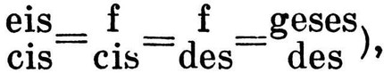 аккордов (as-c-es-ges=as-c-es-fis=gis-his-dis-fis и т. д.), тональностей (Fis-dur=Ges-dur). Понятие «энгармонизм» предполагает 12-ступенный (равномерно) темперированный строй (см. Темперация). Оно сложилось в связи с возобновлением интервалики античных родов — хроматического и энармонического (см. Хроматизм, Энармоника) — и объединением звуков всех трёх родов (вместе с диатоникой) в рамках единого звукоряда; т. о., между звуками диатонич. целого тона помещаются звуки и пониженных, и повышенных ступеней, напр. (c)-des-cis-(d) с комматич. различием между их высотами (у П. де Бельдемандиса, нач. 15 в.; см.: Coussemaker E., Scriptorum…, t. 3, p. 257–58; y H. Вичентино, 1555).