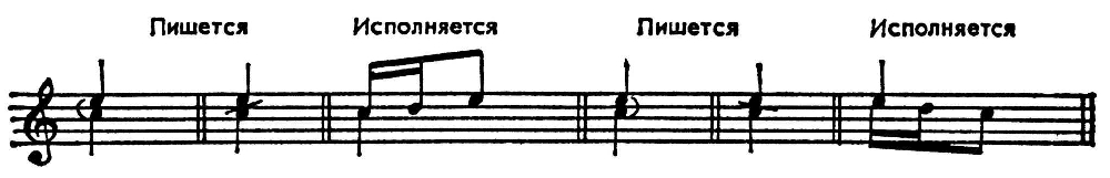 Короткий Ф., при исполнении к-рого указанный в нотах ритм не менялся, обозначался мелкими 16-ми или 32-ми нотами (